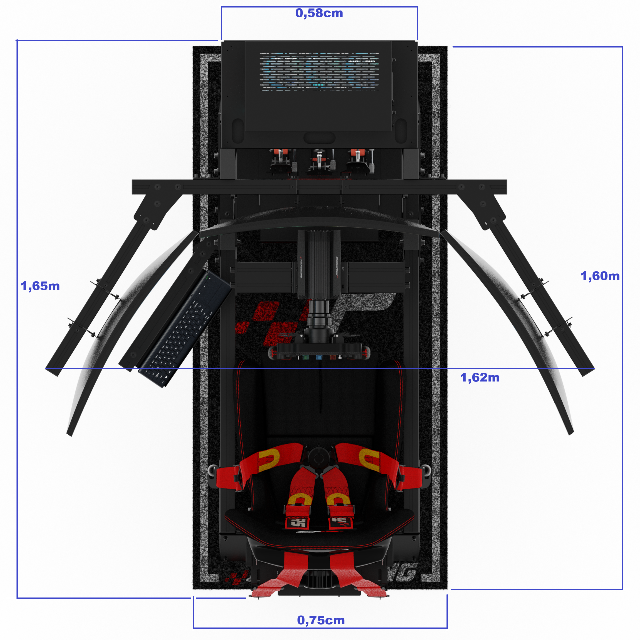 - Suportes para volante, pedaleira, banco, monitor, teclado, CPU, controladora.