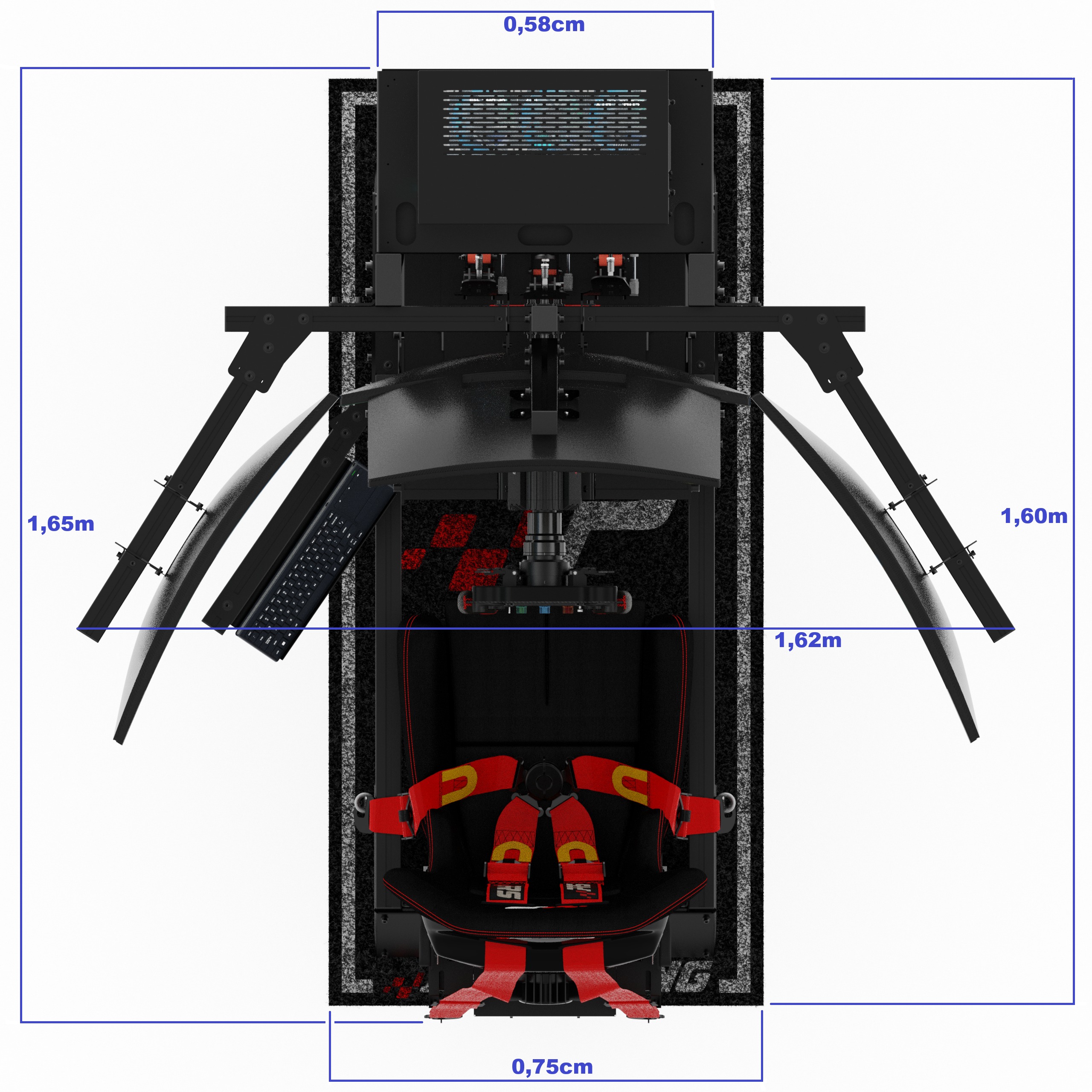 - Suportes para volante, pedaleira, banco, monitor, teclado, CPU, controladora.